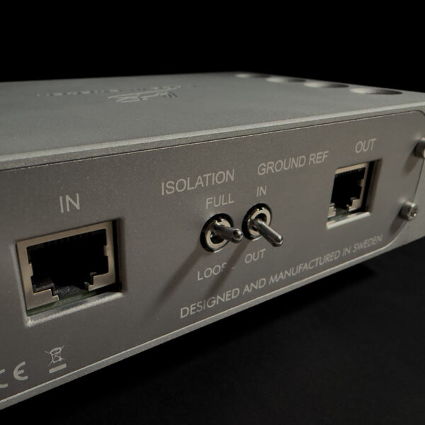 STILL delivers full multi-stepped galvanic isolation for both signal and ground paths, and high-frequency filter to eliminate noise from upstream network sources. This removes jitter, electromagnetic interference (EMI), radio-frequency interference (RFI), and ground-loop artifacts, ensuring a clean data stream to downstream components such as DACs and network streamers. Onboard toggle switches provide selectable configurations for filtering profiles and ground lift options, allowing precise adjustment to match specific system requirements and environmental conditions. One switch allows the user to select the shield reference, choosing either the input or output as the reference point for the shield connection, enabling optimization of the grounding configuration to minimize noise and interference. The other switch enables selection between loose isolation or full isolation, controlling the degree of signal separation to balance system compatibility and maximum noise reduction, tailoring the isolator’s performance to the specific needs of the audio chain.
